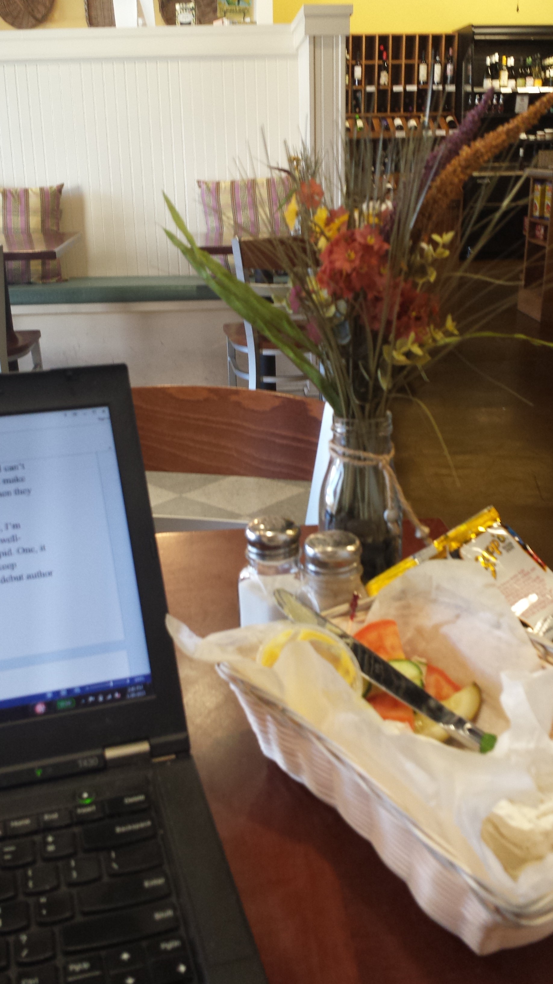 Thanks to Jenn Bertman – author of the upcoming Book Scavenger – for the creative spaces interview! Check out her blog, her books, and other authors’ creative spaces here. Here’s a photo I took while writing at Bull Street Gourmet and Market to get everyone in the creative space mindset.
