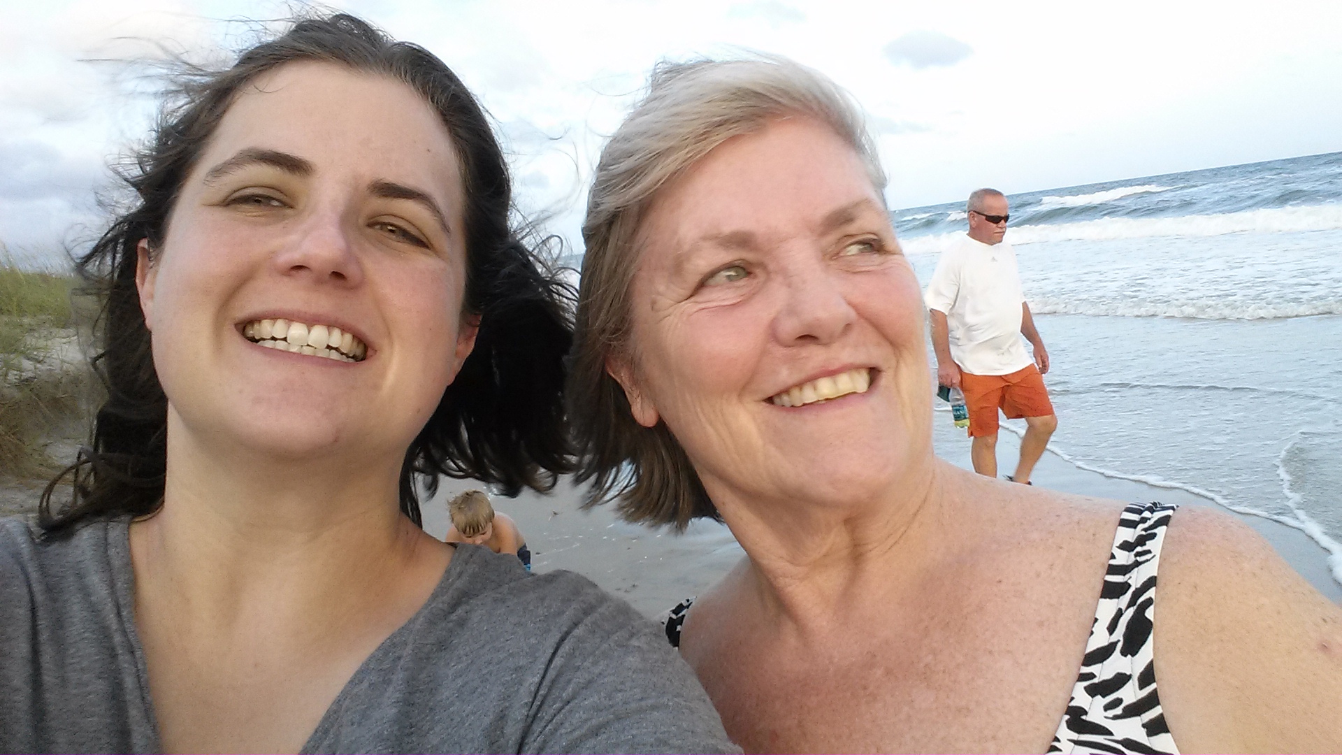 - My mother lives with me. This is a good thing as I force her to read early drafts in exchange for lodging. In the picture below you can see her. There’s a strange little man walking on her shoulder. No relation…